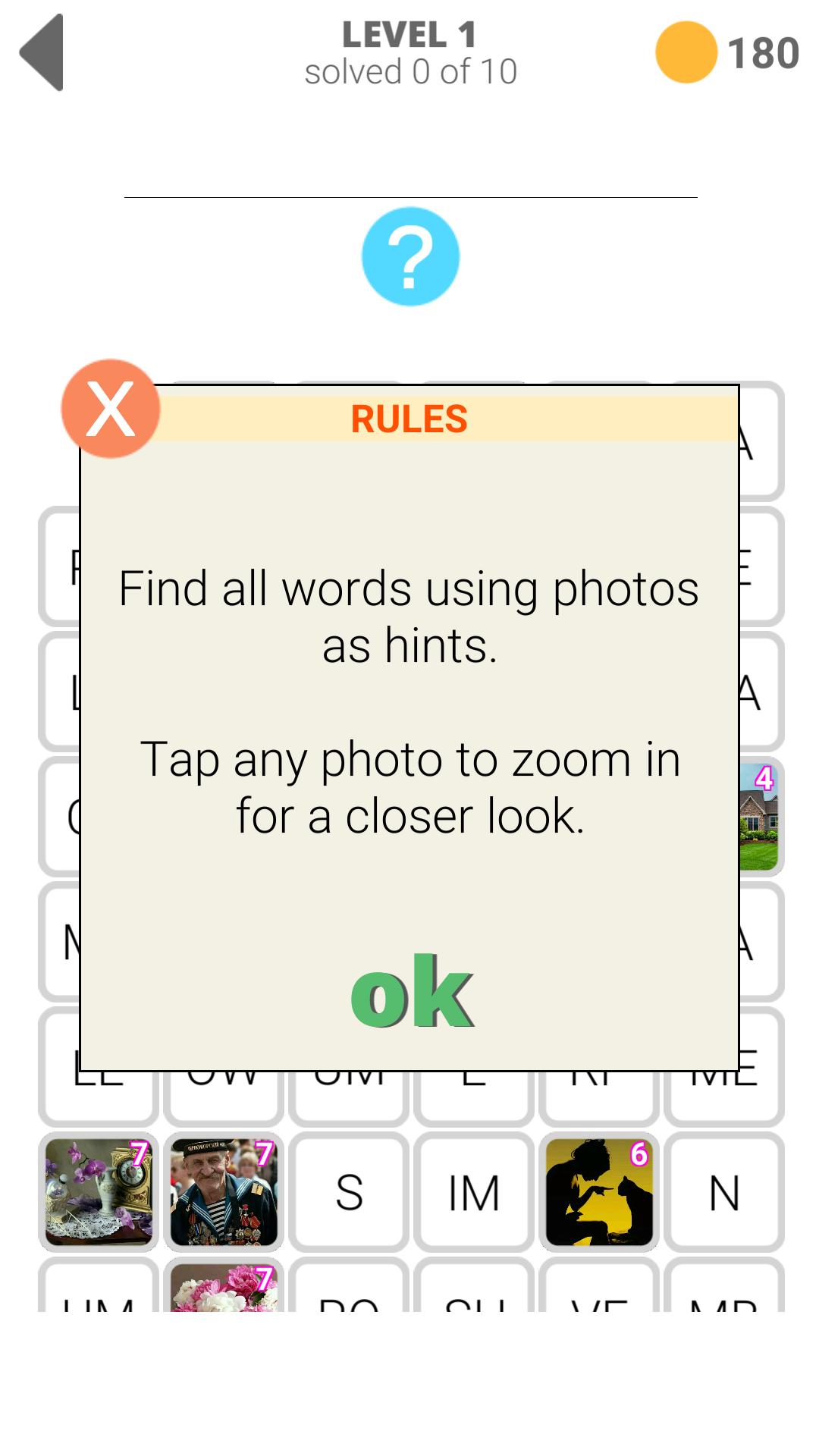 El proceso del juego se divide en dos tipos, cada nivel consta de veinte palabras, las lecciones del juego se dividen en fotos y las respuestas que se dividen en sílabas, su tarea es mirar la foto para adivinar y componer una palabra de sílabas, cuando haces clic en cualquier foto, se puede aumentar la imagen. Este maravilloso juego fue creado para jugar en compañía de amigos, familiares y amigos. Juega en su elección en: inglés, francés, alemán, ruso, italiano y portugués.